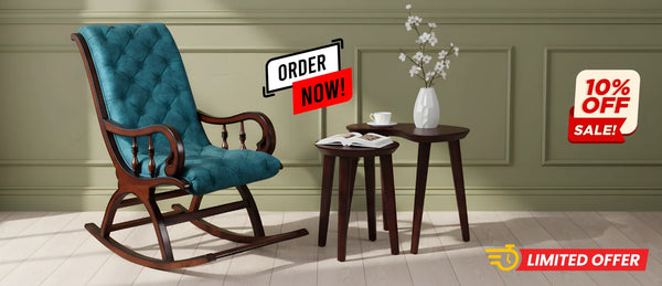 Our collection of rocking chairs is equally wide, varied, and exquisite, each being made from premium teakwood. Each chair is comfortable and durable, just like any of our furniture. We promise that every chair will add to the coziness of the space and provide maximum comfort while you relax on it, swinging soothingly, irrespective of its variance in design, size, features, and color.