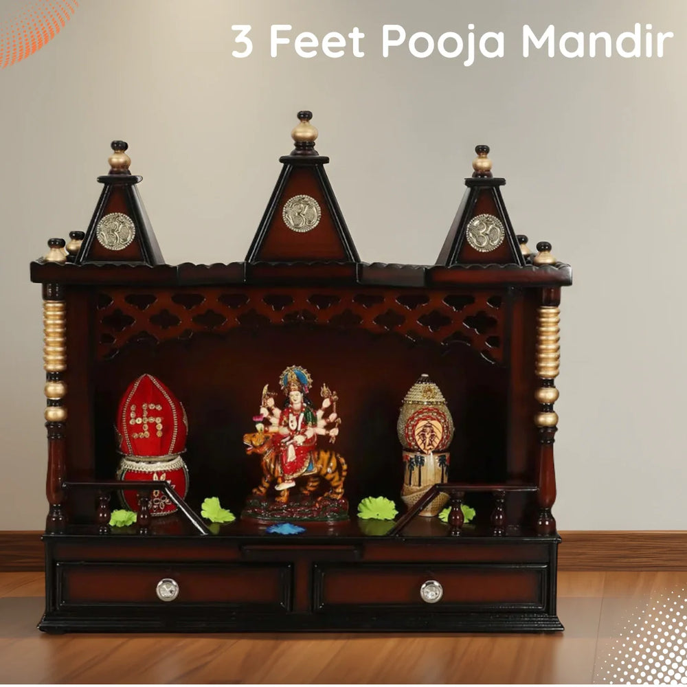 Enhance your home's spiritual ambiance with our handcrafted 3-feet pooja mandirs, designed to blend tradition with modern aesthetics. Each piece reflects superior craftsmanship, offering a serene space for your daily rituals.