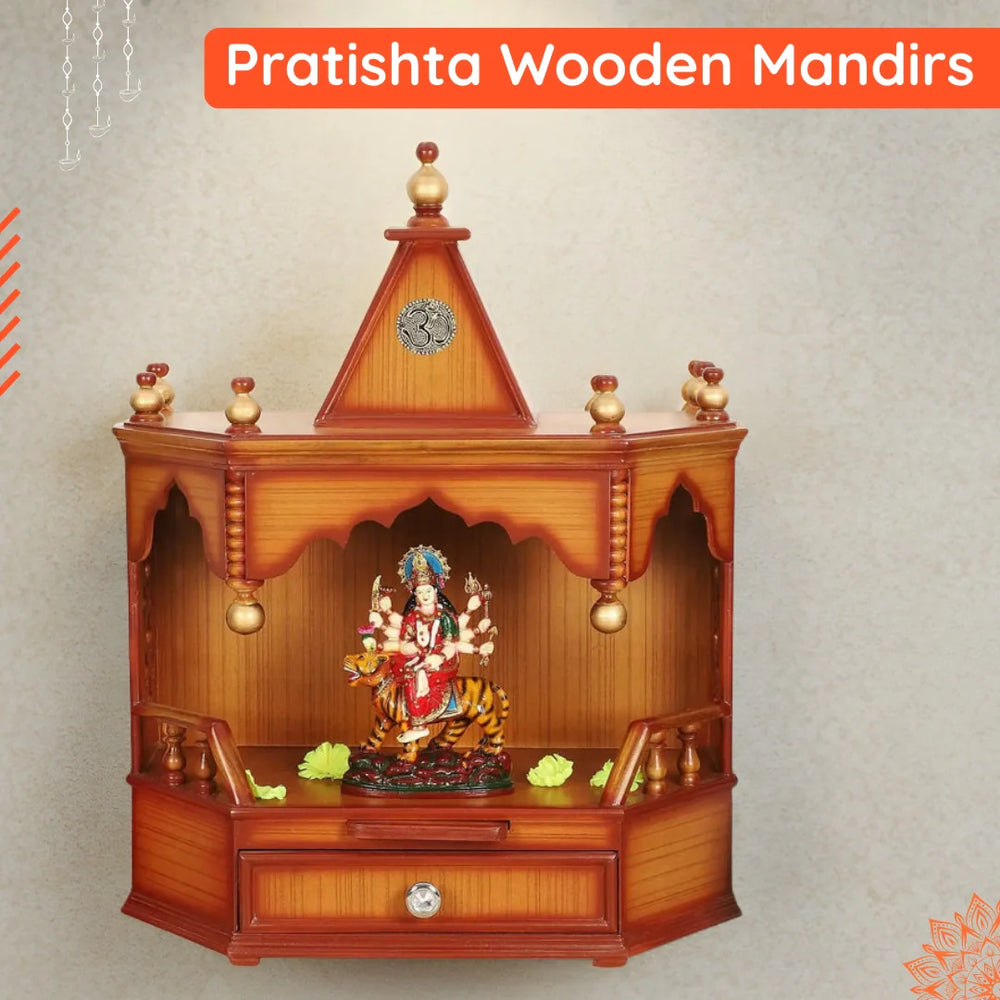Pratishtha Solid Wood Wall Mount Pooja Mandir (Teak Gold)
