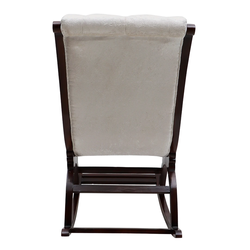 Touffy Fabric Upholstered Teak Wood Rocking Chair (Brown-Silver)