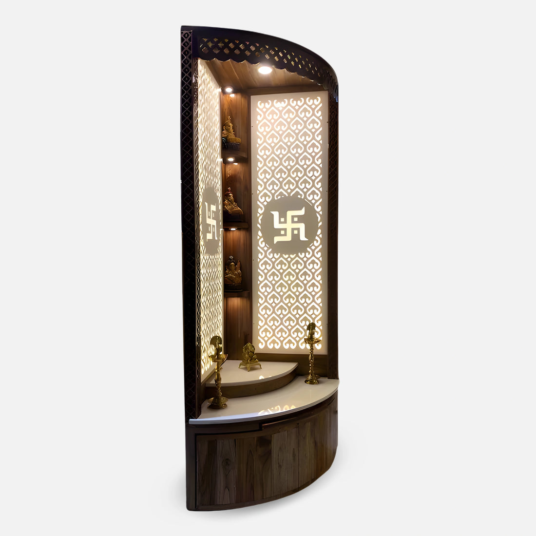 If you live in a small, compact apartment, wall-mounted doorless mandirs are best choice for you.