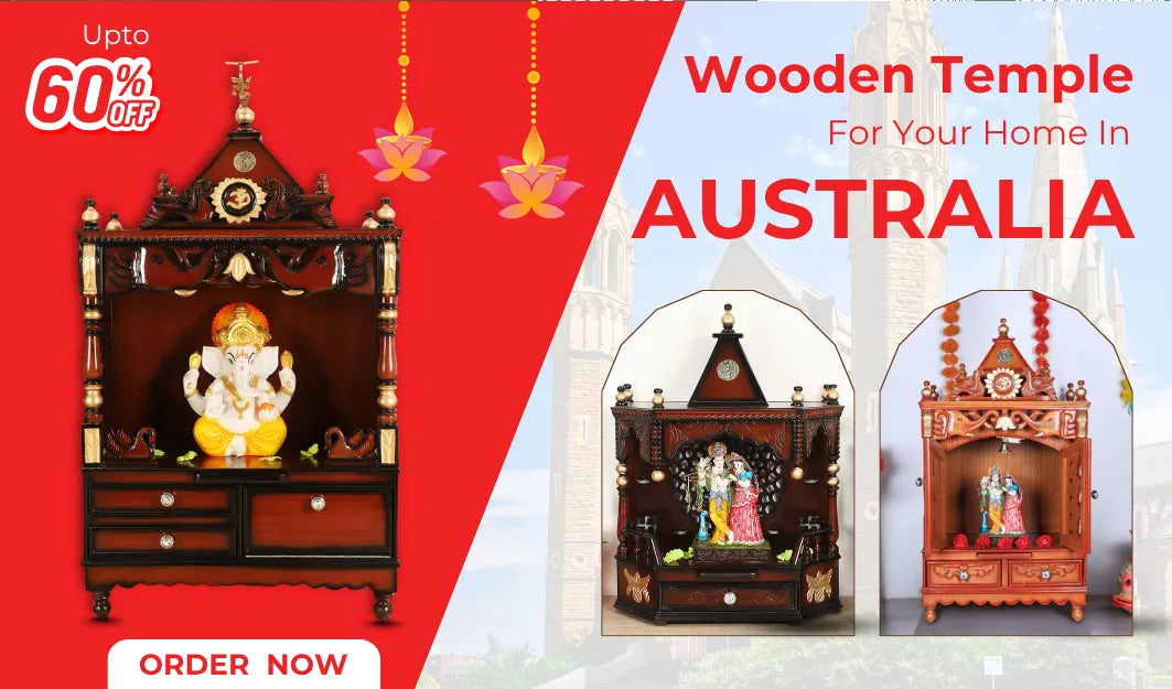 We specialize in wooden pooja mandirs. However, we are preferred for our teakwood temple for home design in Australia. It is premium quality and sourced from specific plantations. Every piece is durable due to the strength and natural oils that prevent decay due to moisture, termites, and wear and tear.