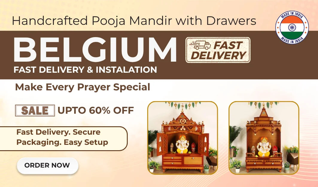 Add divine charm to your home in Belgium with our handcrafted mandir for home. Each piece is designed to bring peace and devotion to your living space.