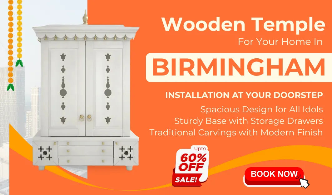 A Hindu home puja mandir in Birmingham is a surprisingly very relevant and very important piece of furniture. The United Kingdom (Birmingham) is home to around 10 lac Hindus. This makes Hinduism the third most prominent religion in Birmingham. They enjoy free worship of Gods and they have over 180 temples according to Historic England (HE). Here is another fun fact- the Diwali on Trafalgar Square is said to be one of the biggest celebrations of Diwali outside of India.