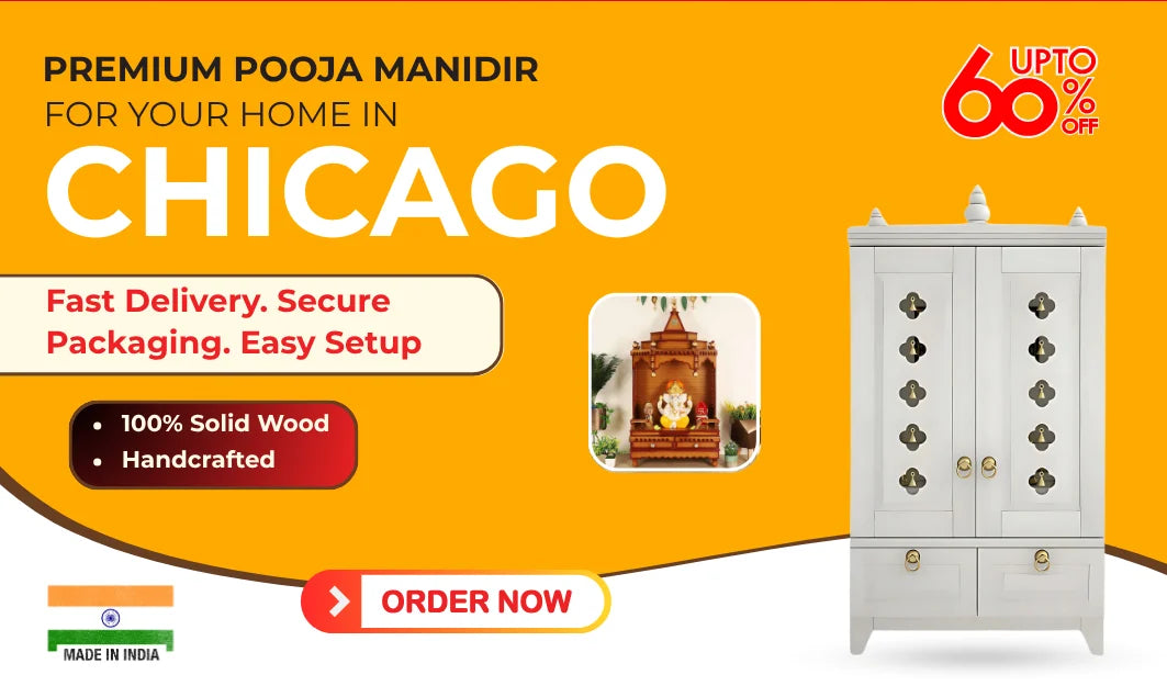 Bring Indian art to the West: Every mandir for home in Chicago is made by the finest carpenters to offer the best value for your money and uphold Indian tradition, art, and culture.Each mandir for home in Chicago in our collection is essentially and authentically Indian. Whether the home temple in Chicago features a minimalist design or elaborate carvings, the temple design for home in Chicago is made according to traditional Indian art and styles.