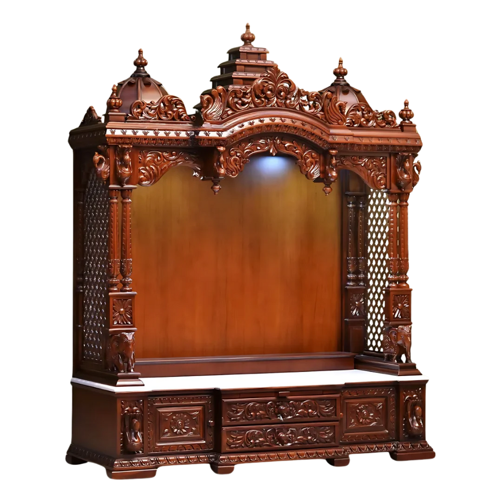 Every DZYN teak mandir is also protected by a 12‑month manufacturing‑defect warranty—we will repair or replace any faulty part at no cost to you