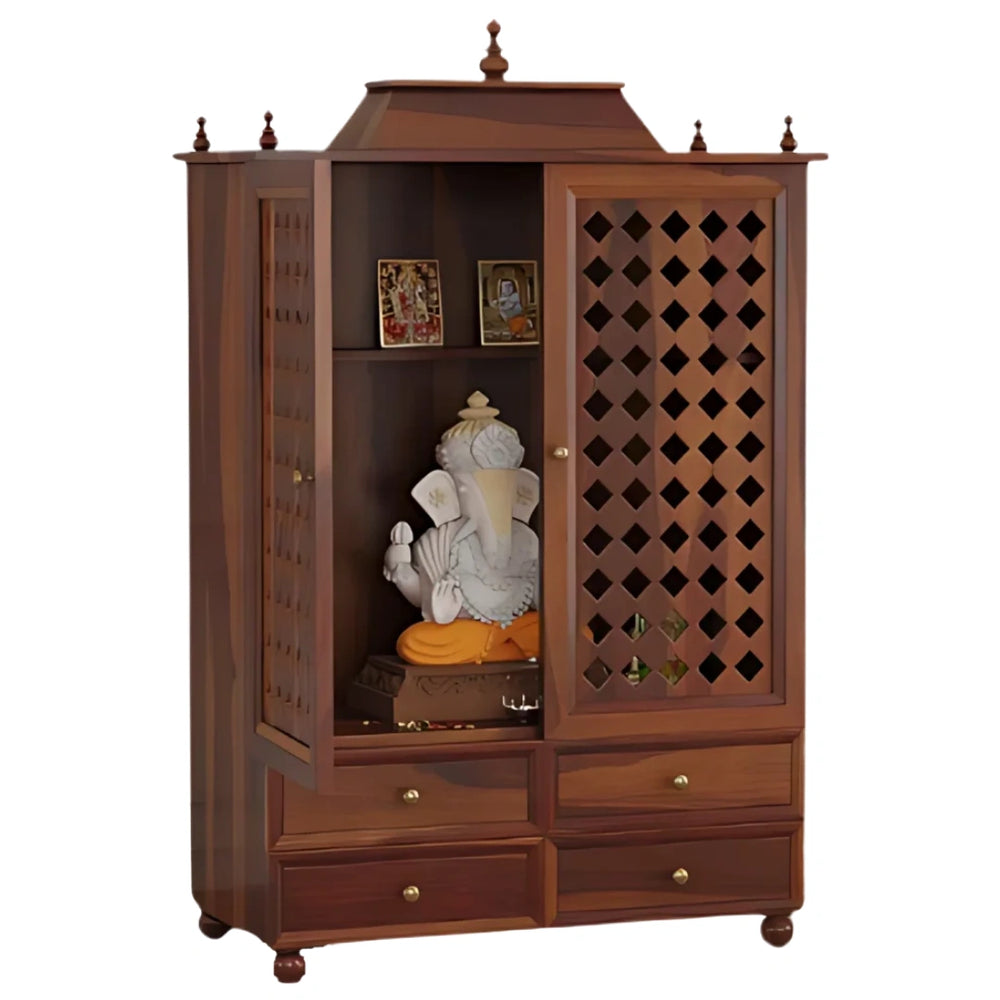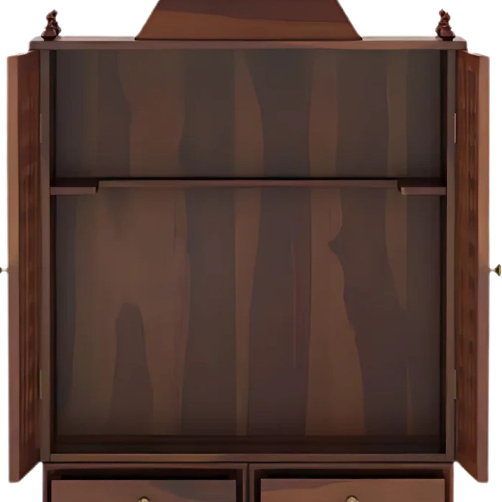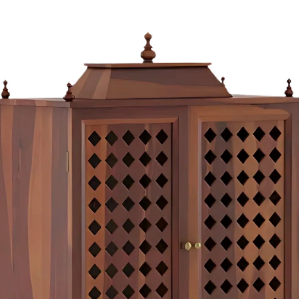Aarvith Teak Wood Pooja Mandap with Door (Teak)