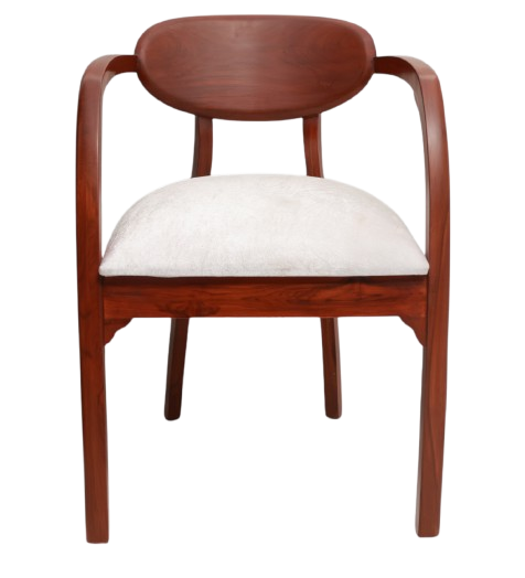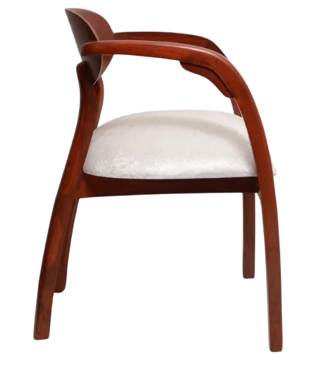 Combining wood with other materials: While a wooden chair in brown color is beautifully popular on its own, it can be paired with the other materials to create a unique design. Wooden chair with upholstered seats and high backrest provide extra comfort and touch of luxury to wooden living room chairs. When wooden frames combined with Leather or fabric cushions, it creates a perfect balance between softness and structure. While the high density cushion enhances comfort and the overall design increases the aesthetic appeal of the wooden chairs for living room. This bedroom chair in brown color is a perfect example of minimalist designs paired with a combination of upholstered seat and high density cushion.