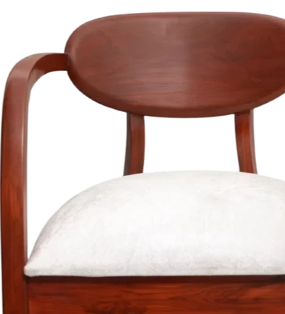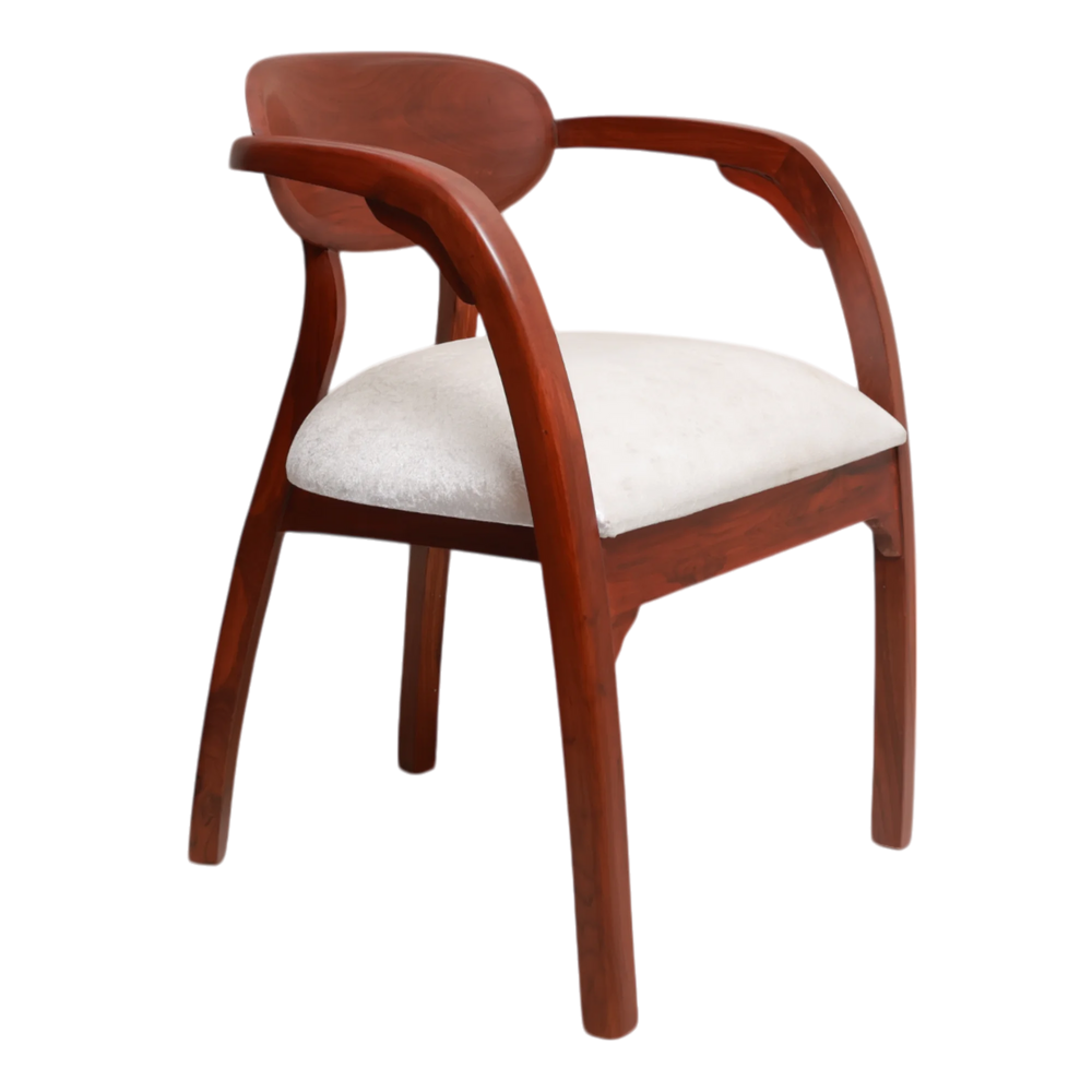 This bedroom chair showcases the timeless appeal of the teak wood that is combined with the modern upholstery. The smooth and curved armrests and sleek wooden legs highlight the expert craftsmanship that ensures the chair remains a focal point in any room. The soft Upholstered fabric complements the rich wooden backseat. The versatile rich brownClassic Design with Modern Comfort color of the armchair with soft cream color silver fabric cushion blends in any kind of home decor. The glossy finish enhances the overall aesthetic appeal of the wooden wooden chair. The cushion has been properly attached to the chair and this gives the chair a perfectly clean look from both the front and back.