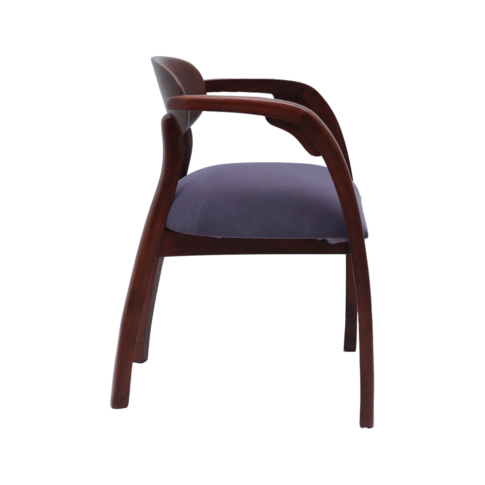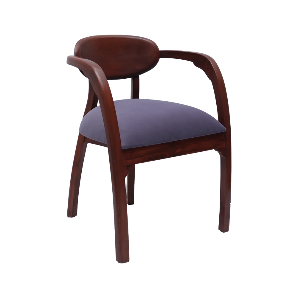 The Abetos wooden chair is inspired by simple Scandinavian design. It shows a perfect mix of classic wood and modern shape. The soft velvet-like fabric on the seat gives a rich and comfortable feel. As time passes the teakwood becomes even more beautiful without losing its strength. The smooth flow between the arms and legs shows the fine skill of the makers. The round frame keeps the design simple while adding fine details at the joints. The simple and elegant look makes it perfect for living rooms workspaces or quiet corners. The design also hides joints as well giving the chair a clean and premium look.