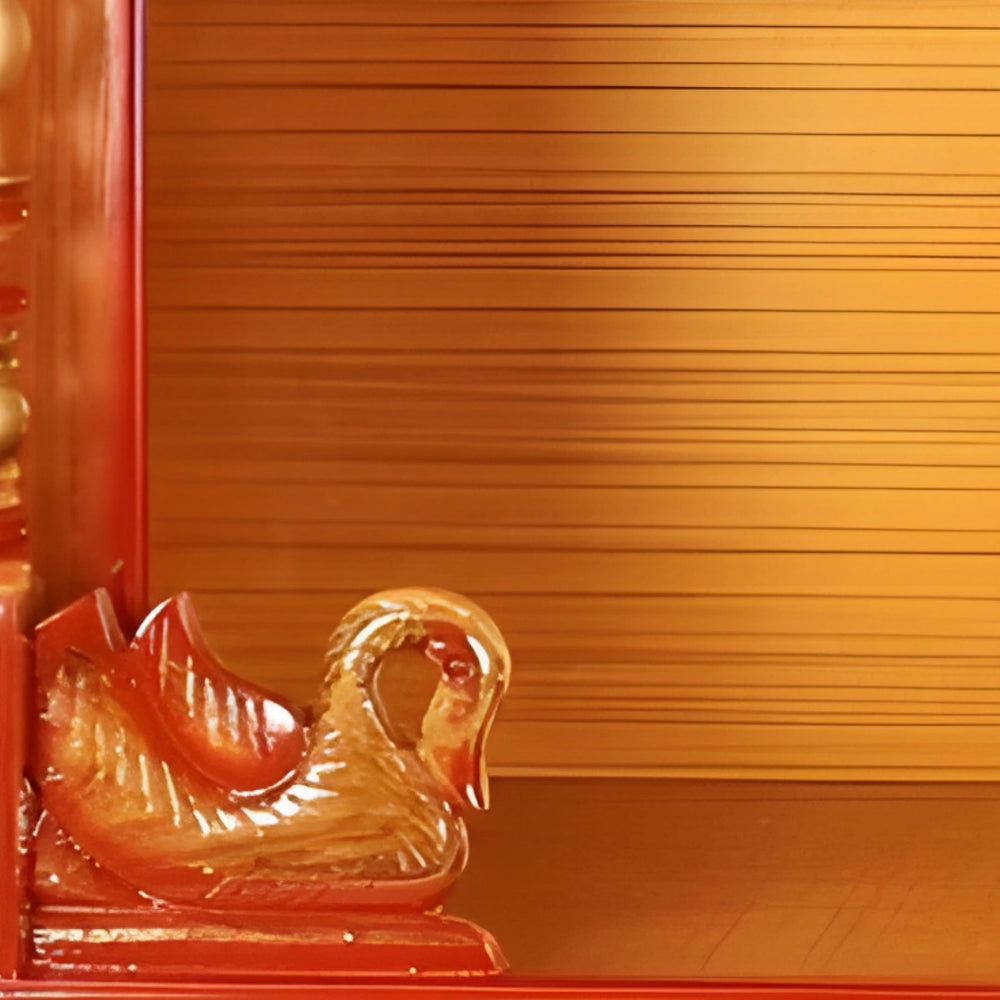 This wooden temple is a beautiful example of fine craftsmanship. It has been skillfully crafted by artisans, with all details brought into consideration. The intricately carved swans on the front add much grace and peace to your pooja space. The side jali brings in soft light while enhancing the spiritual atmosphere. The front jali adds to the traditional charm of the temple with its delicacy. This handcrafted wooden temple is a treasured addition to your house because of its meticulous craftsmanship and attention to detail in every element. This temple is a work of art that elevates the spiritual quality of your home.