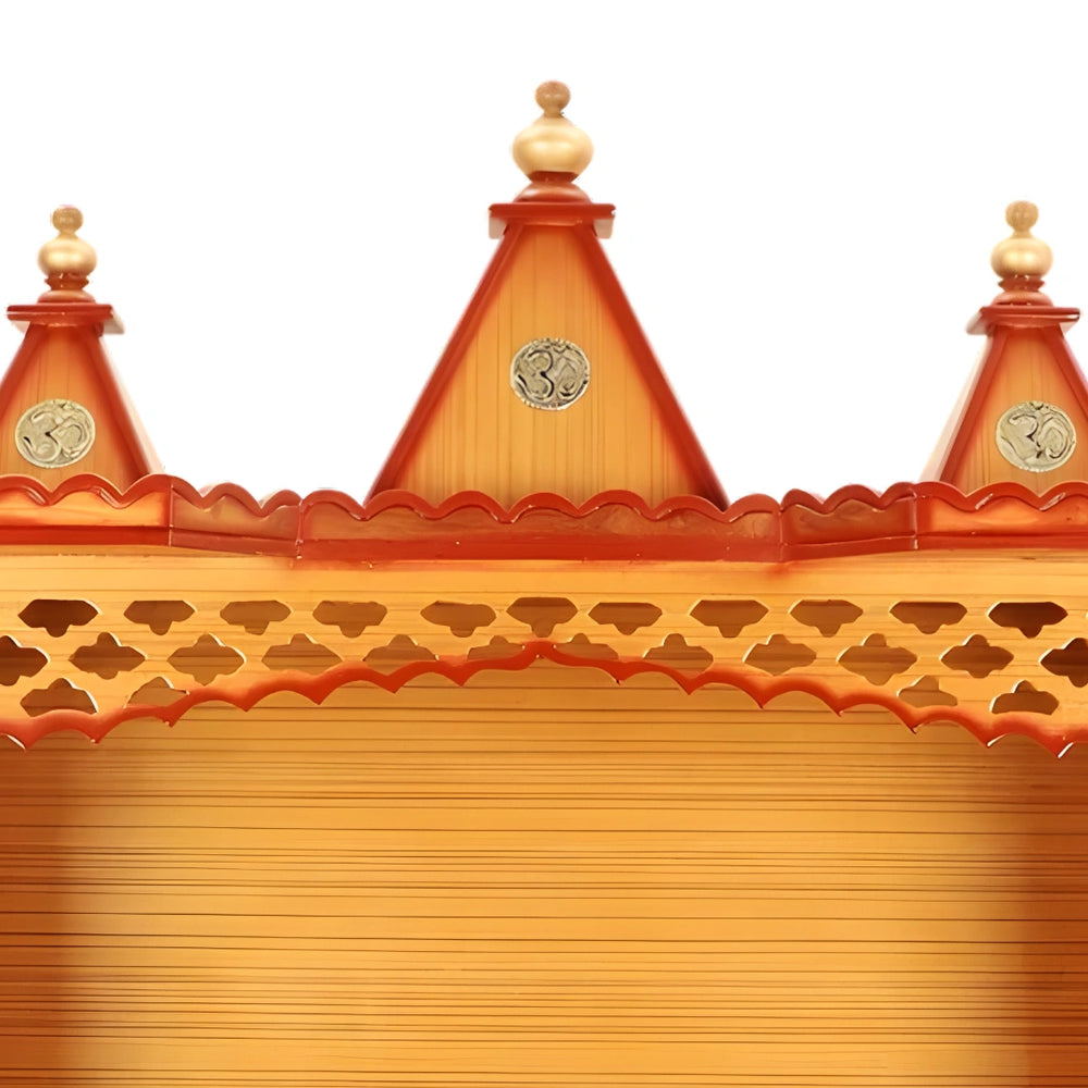 The three-dome design of this wooden temple adds a unique architectural feature to this pooja mandir. Every dome is expertly crafted to represent spiritual elevation and to add a traditional element to the temple's overall architecture. Domes are considered to balance the energy of a structure. The domes on top of the mandir are a symbol of the place of God in Heaven. The shikharas of the mandir resemble the famous Hindu temples including Jagannath Temple and Akshardham Temple. This wooden temple is a beautiful and significant addition to your pooja room because of its three-dome design, which captures the spirit of ancient Indian temple architecture.
