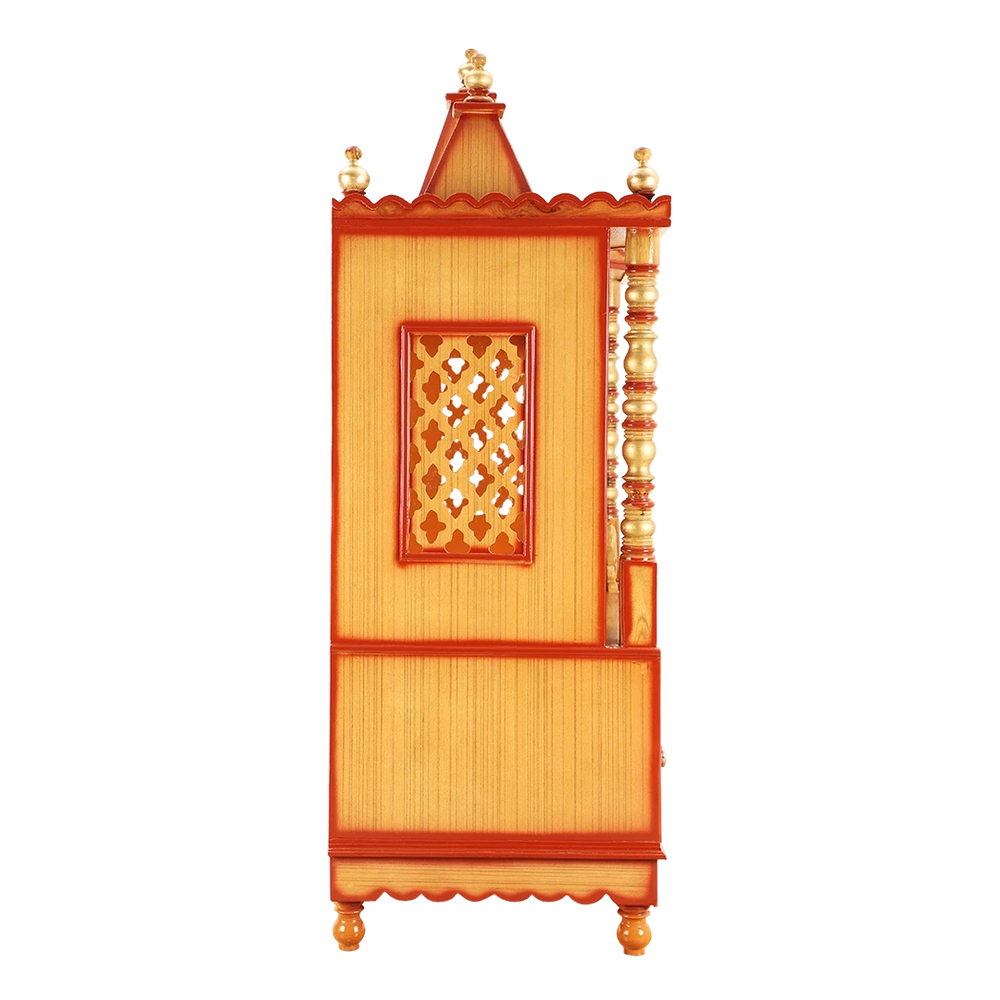 Abhikya Sthana Floor Rested Pooja Mandir without Door (Teak Gold)