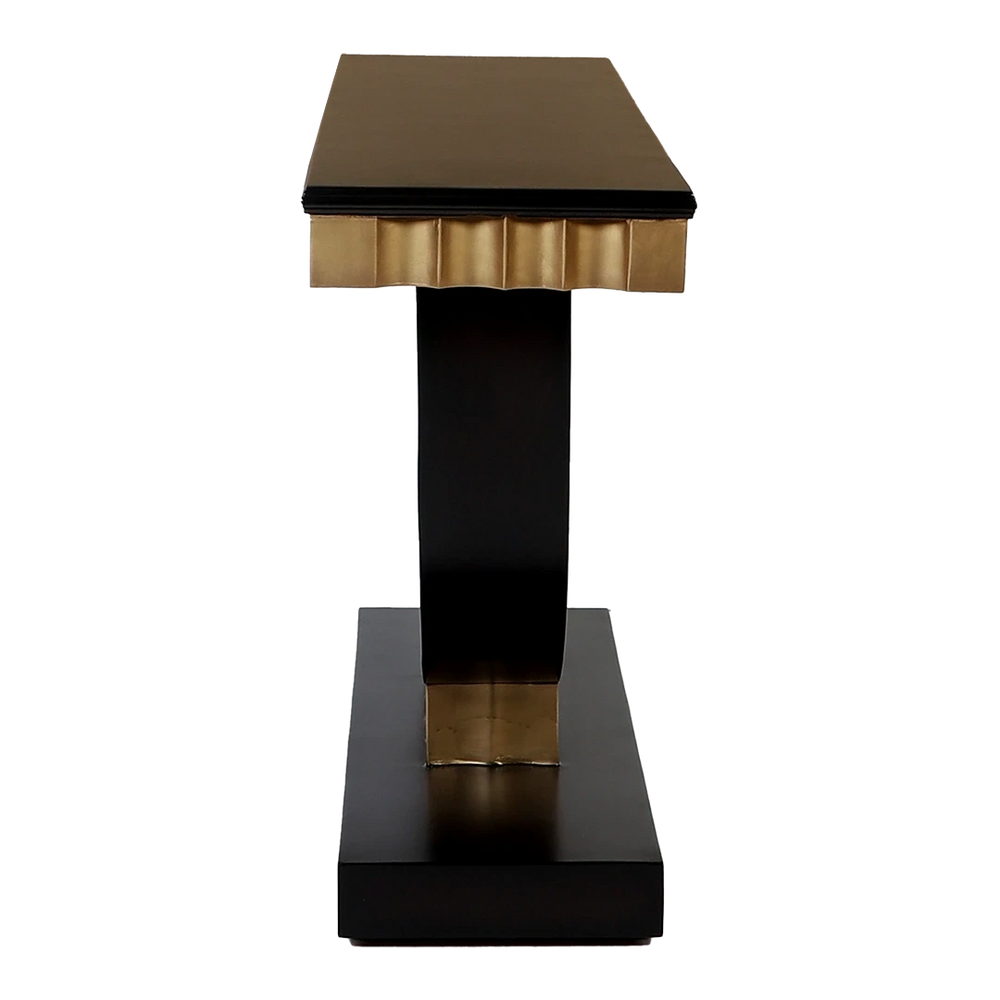 When people buy furniture, they often care about how it looks along with its use. Both appearance and function matter. A wooden console table is a smart choice because it offers both. This table can enhance the look of your home while being practical. Its black and gold color adds natural beauty to any room. The finish gives a soothing and pleasant feel to your interiors. This console table works well with various design styles, such as modern, eclectic, and vintage. It easily fits into different types of décor, making it a useful addition to any home. Whether placed in a hallway, living room, or bedroom, this console table offers both style and convenience, meeting the needs of any space effortlessly.