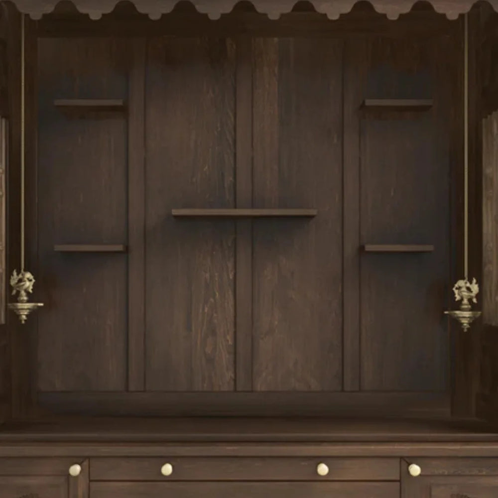 Anandam Teak Wood Pooja Mandap with Door (Brown)