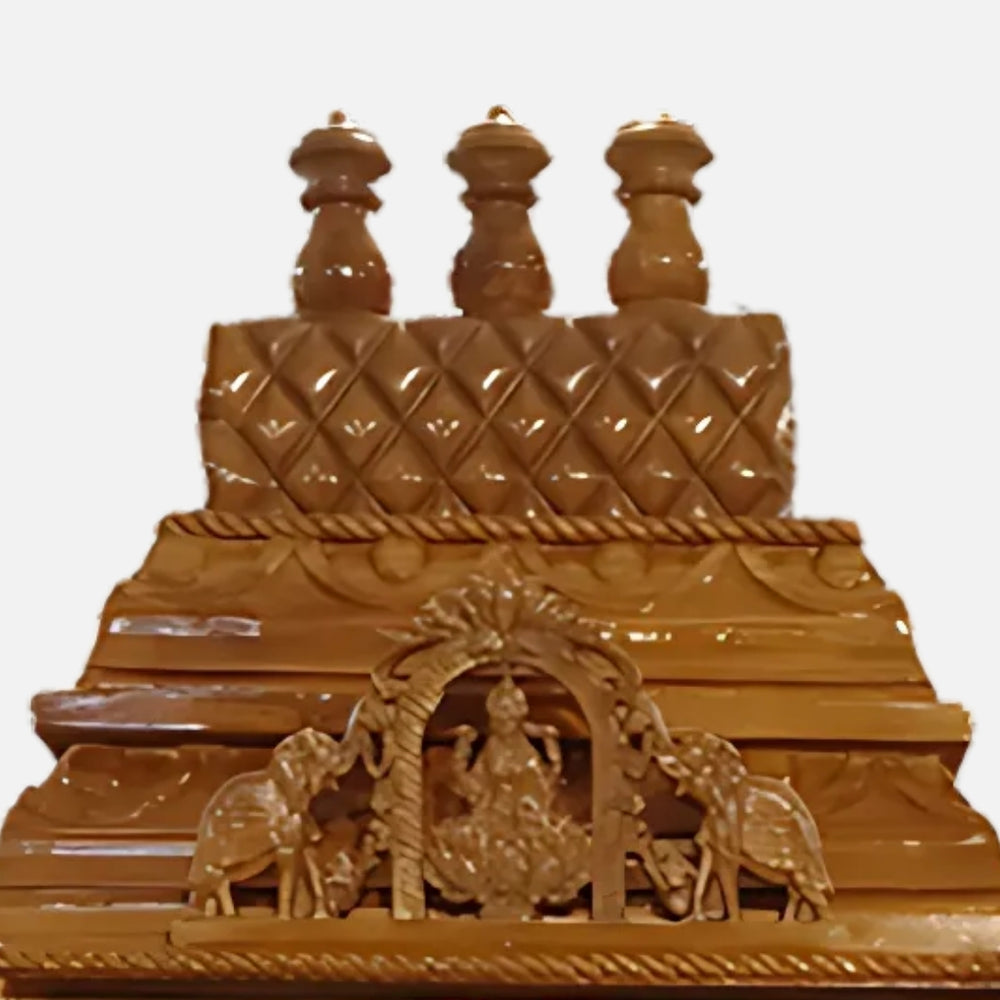 The top of the mandap is decorated with complex crown work containing deity motifs and flowery decorations. This gives it a final touch of elegance and makes the mandap appear royal. The crown design is temple-inspired, which means divinity and tradition. It enhances the big size wooden temple appeal of the mandap. The carvings add a religious touch to your holy spot. It is rich in the work that is depicted in detail. The fine artistry is further promoted by the teak color finish. This crown detailing makes the mandap a real devotional center.