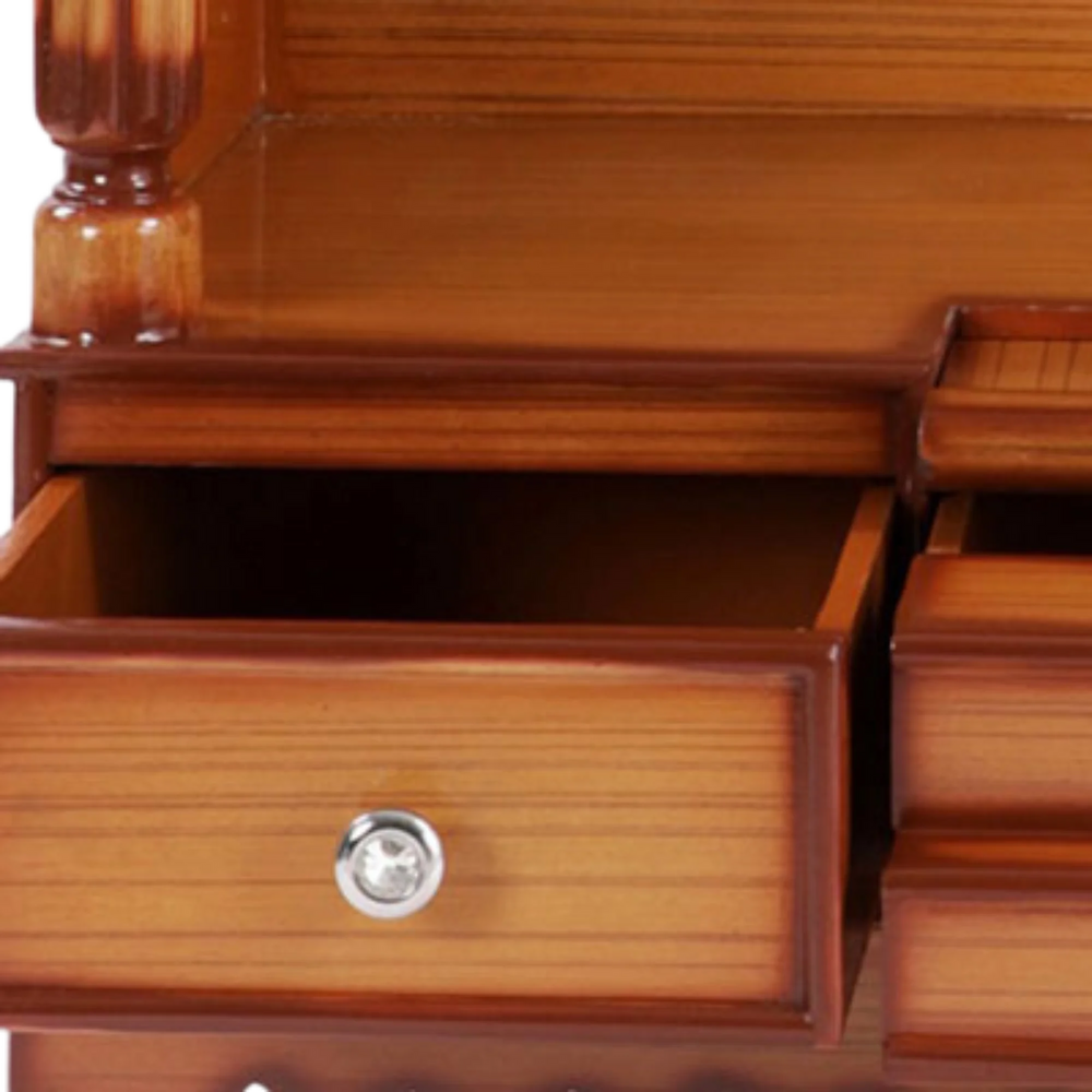 The Antarusya Wooden Temple has several drawers at the base for plenty of storage. The purpose of these compartments is to make your worship practice easier by keeping your pooja requirements arranged and accessible. These drawers provide ample space to store your pooja things like prayer books, incense sticks, and other items. The drawers are fitted with crystal-like knobs that look elegant and luxurious on the wooden temple, which makes this home temple both beautiful and practical. This storage option keeps your pooja space organized. It creates a beautiful and useful home temple, while also adding a touch of sophistication to your sacred space.