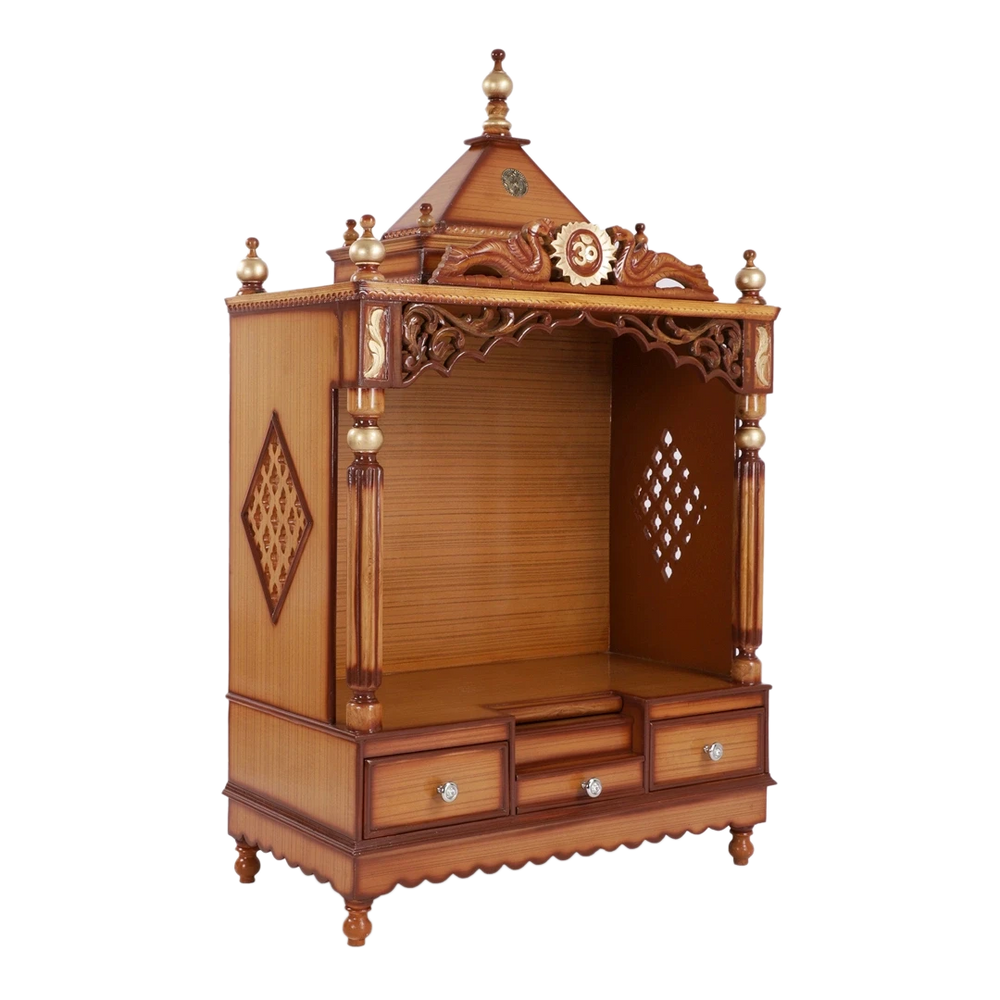 Antarusya Large Floor Rested Pooja Mandir without Door (Teak Gold)