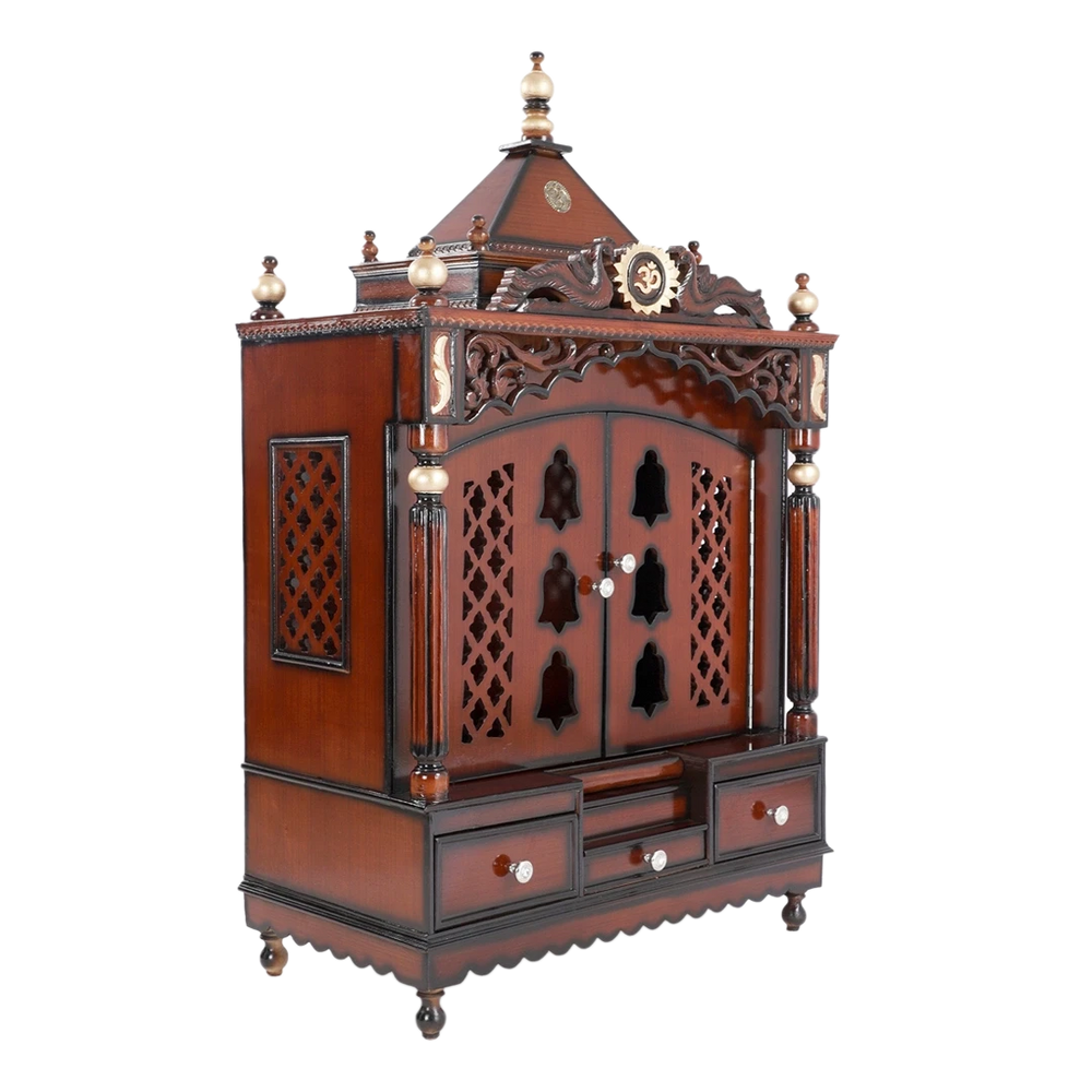 The simple meaning behind a mandir for home is far deeper than a space for prayer; it is a place to keep family traditions and cultural values alive. Keeping sacred rituals passed down through generations requires a wooden mandir for home in brown color in many Hindu families. By having a beautifully crafted pooja mandir for home, these traditions flourish and spiritual practices keep on being a part of our family life.