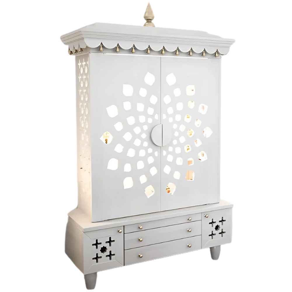 Anviksha Teak Wood Pooja Mandap With Door(White)