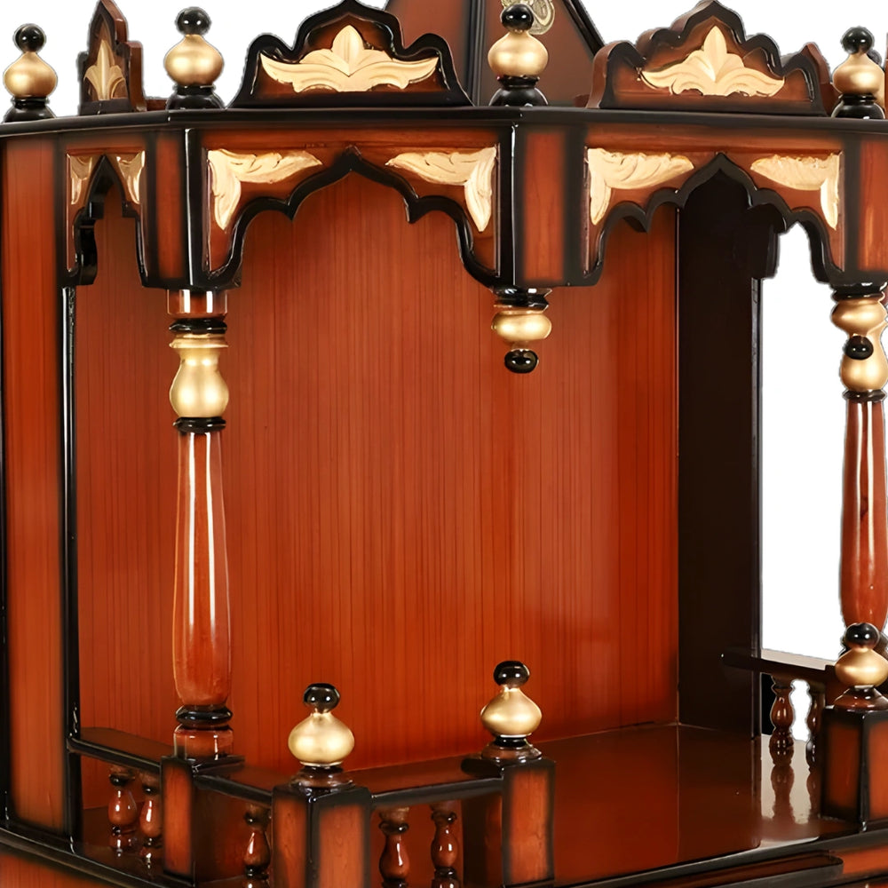 Apratima Medium Floor Rested Pooja Mandir without door (Brown Gold)