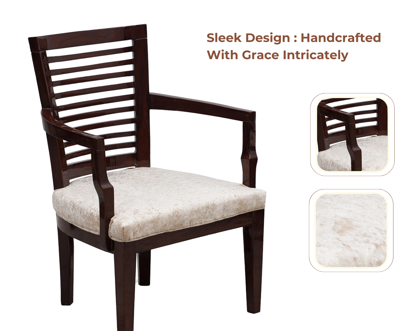 Wooden chairs for living room aren’t only furniture, they’re a window into the history of craftsmanship and design. Antique bedroom chairs or wooden living room chairs are these chairs and are old world charm but merge in with the modern style. That wood will continue to develop its natural patterns over time making an aged and rustic look. The second thing is that if you have these wooden chairs, they can actually turn into family heirlooms, passing them on to your future generations, so I think every little bit helps. In this day and age where trends go fast, wooden furniture, especially wooden chairs, are an enduring classic. From ancient Greece to today, wooden chairs for the living room have kept their value and charm. Their versatile design makes these bedroom chairs a functional and stylish addition to any home, preserving their rich heritage for the future. The Aura Teak Wood Arm Chair is a great option for those seeking a durable and reliable armchair. This wooden chair is made from strong teak wood with comfortable arm rest and warm brown finish suitable for the bedrooms and the living rooms. This chair can be used either as part of a set of furniture or by itself and provides style and comfort. Its brown color blends easily with different interior styles, and the solid wood frame ensures it will last for years. This versatile chair is a practical and elegant choice for any space.