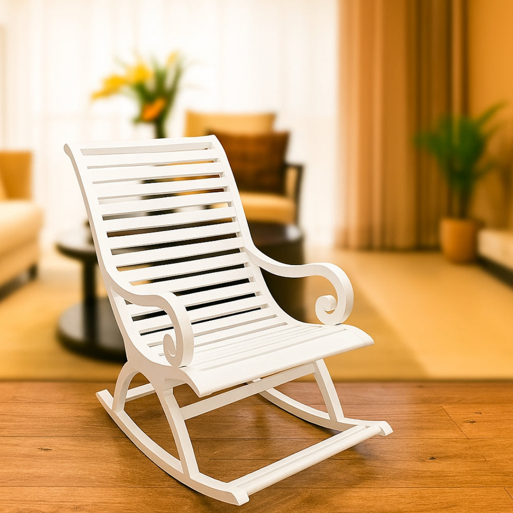 Boston rocking Chair is an elegant and comfy rocking chair with a sleek design and smooth rocking motion. This provides the ideal mix of relaxation and style, making it perfect for reading or winding down. Its ergonomic structure supports natural posture and will keep you comfortable for the most part when you are using it for long hours. With the warm Teak finish, it really pops and is something you want to be seen in the space. The wooden rocking chair looks very well in different interiors, is ideal for daily use and serves as a comfy resting chair. The rhythmic motion turns relaxation into an experience, and this is why it's so practical aaram chair. It’s designed to be durable, something that promises years of use without sacrificing comfort. This wooden rocking chair provides both convenience and elegance, whether for leisure or daily sitting.