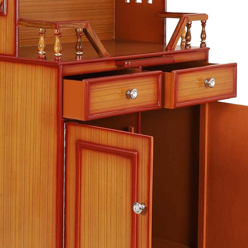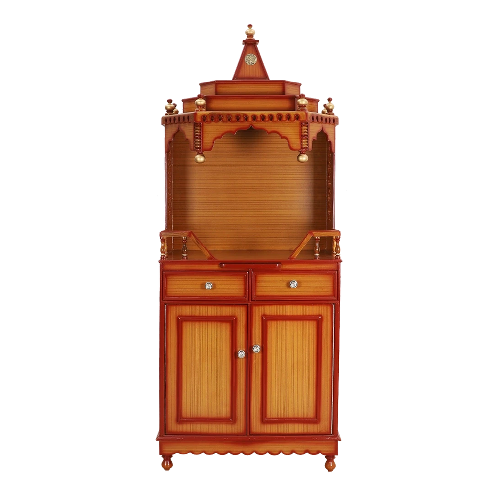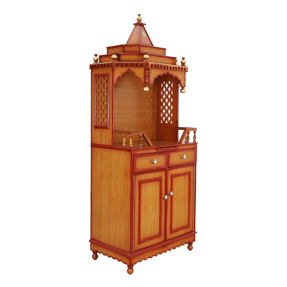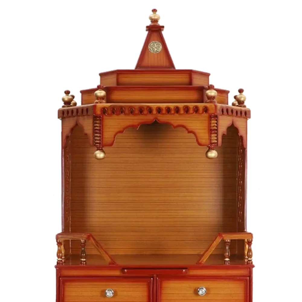 Furthermore, adding to the intrinsic value of the big temple for home in teak color is its customizability. You can add a personal touch to the temple by creating partitions in the drawers, installing extra shelves for more storage, installing curtains to the pooja area, or even creating a multi-level platform to put up more deities. The robust nature of teakwood allows modifications to be made after purchase.