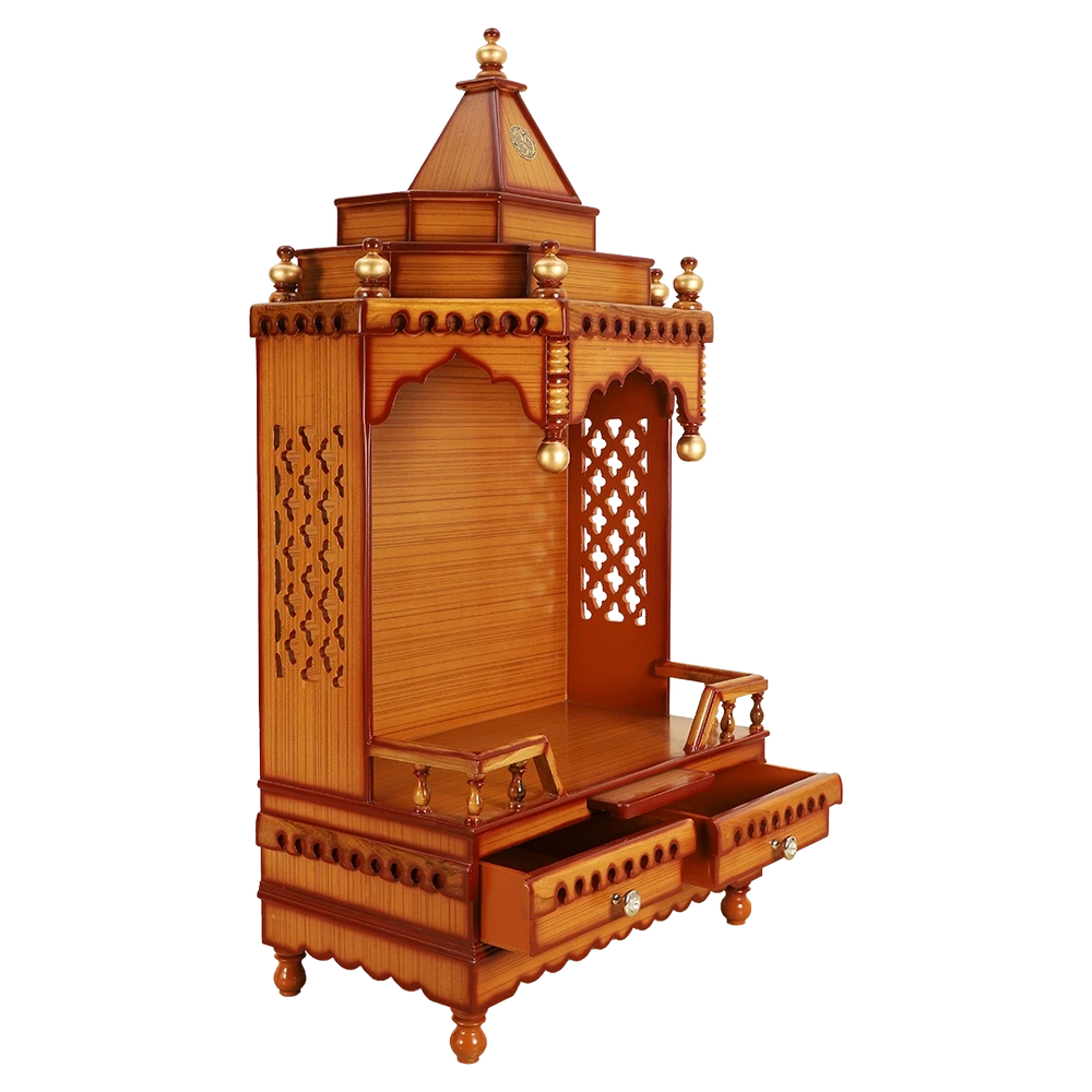 In selecting a pooja mandir for your home, this is a vital selection process as it will become the focal point of your daily prayers and its energy emanates from your household. This Pooja mandir emerges to be the best suitable based on the quality, appearance, and functionality required in a home temple design. The mandir for home is made from premium teak wood and is inherently durable enough to last as long as you want. Due to the natural oils inside this wood it is very resistant to moisture, to decay and to pests. As such, your wooden mandir for home will stay beautiful, thus requiring little maintenance, for long periods of time.