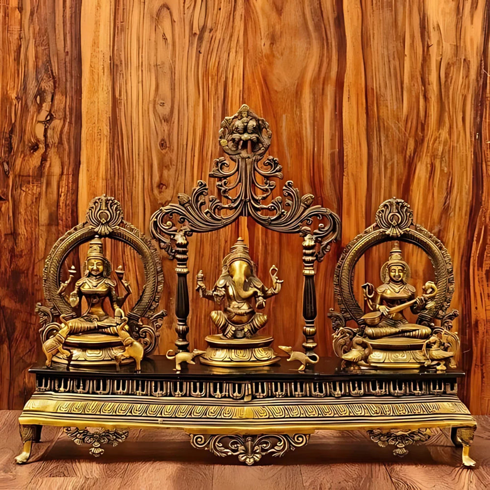 Brass Lakshmi ganesh Saraswati Idol with Singhasan 2