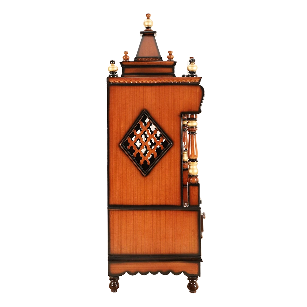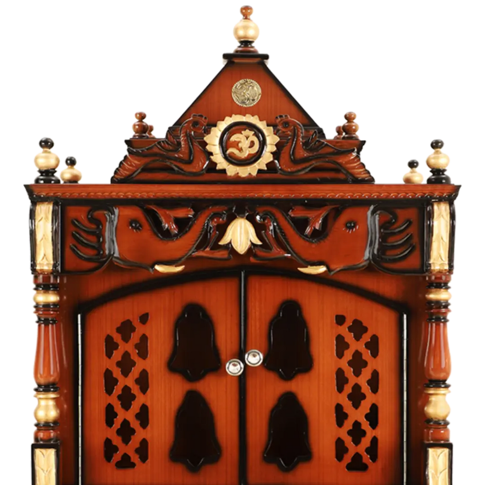 Divine Home Medium Floor Rested Pooja Mandir with Door (Brown Gold)
