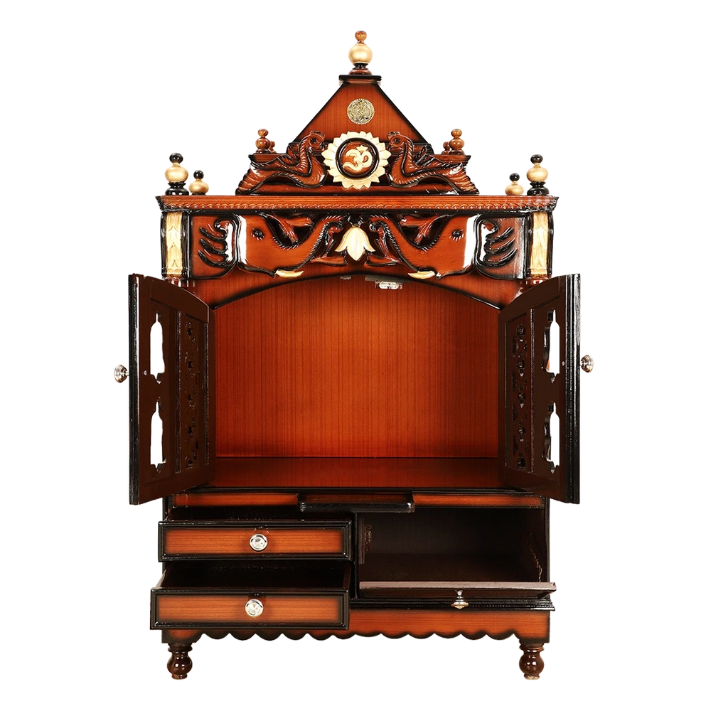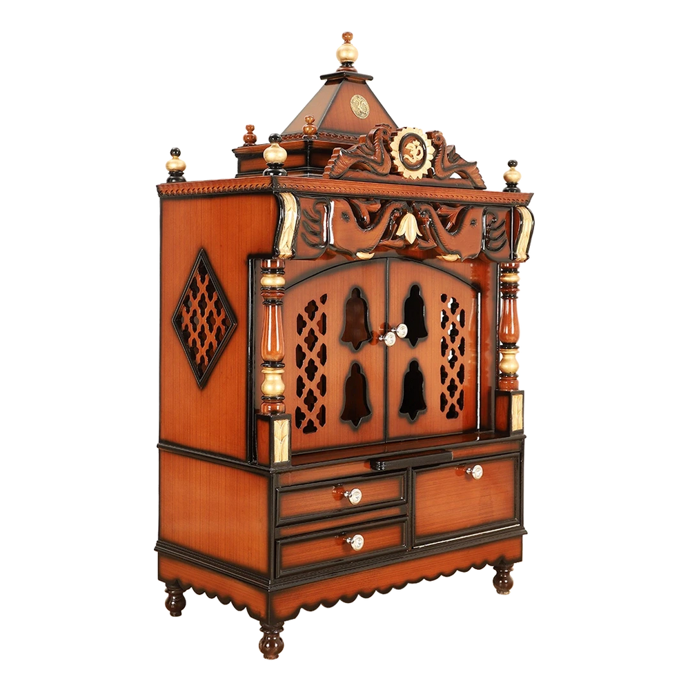 Purchasing mandir online is convenient since you do not only have to choose from a wide range of sizes and a huge range of materials available but also the type of design. A home pooja mandir online permits you to surf through various types of styles such as traditional design types to the more innovative types. One of the great benefits of buying a wooden mandir for home online is you can shop for various products, read about customer feedback, and choose a mandir design for home in brown color suitable to your requirements. Shopping online means you are able to buy a home temple design that fits whatever space you have or your spiritual needs.