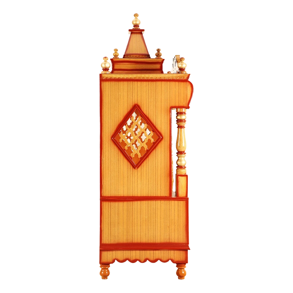 Divine Home Medium Floor Rested Pooja Mandir without Door (Teak Gold)