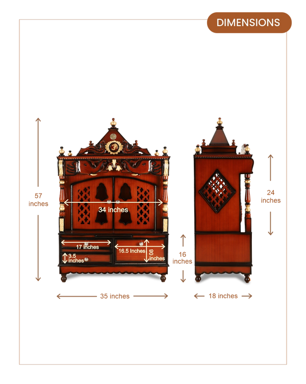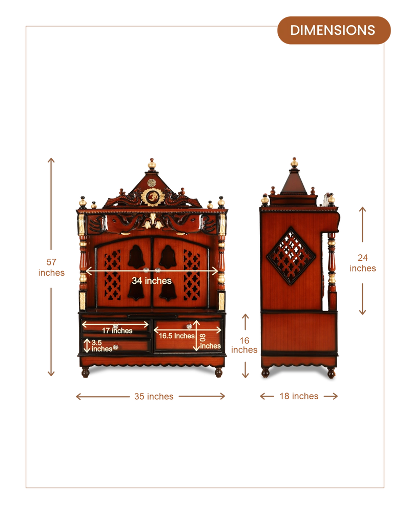 Divine Home Large Floor Rested Pooja Mandir with Door (Brown Gold)