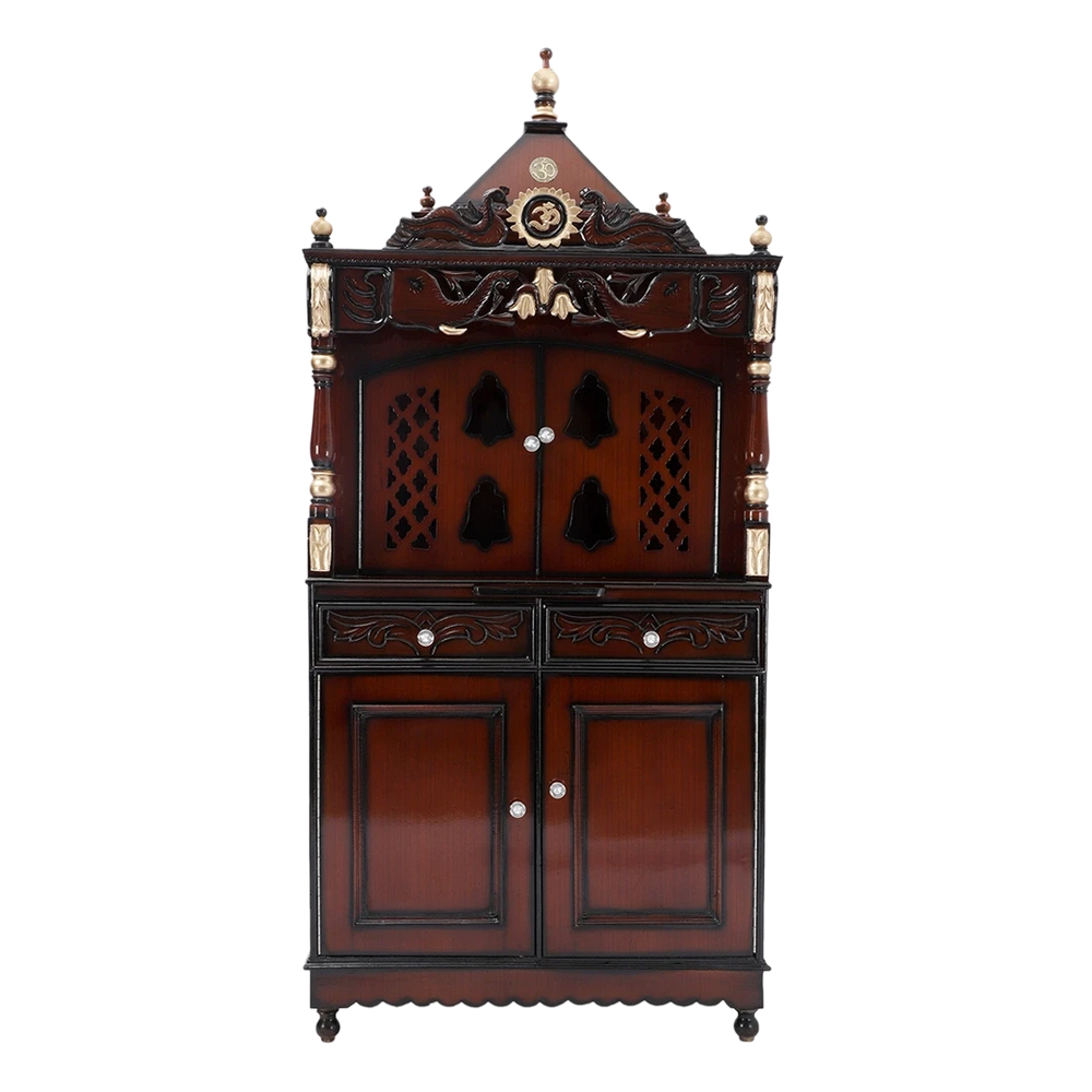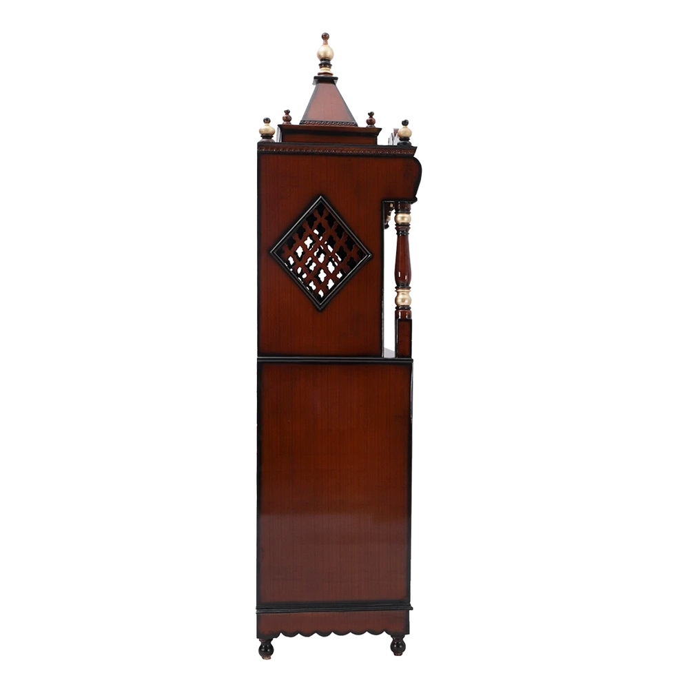 Divine Palace Large Floor Rested Pooja Mandap with Door (Brown Gold)