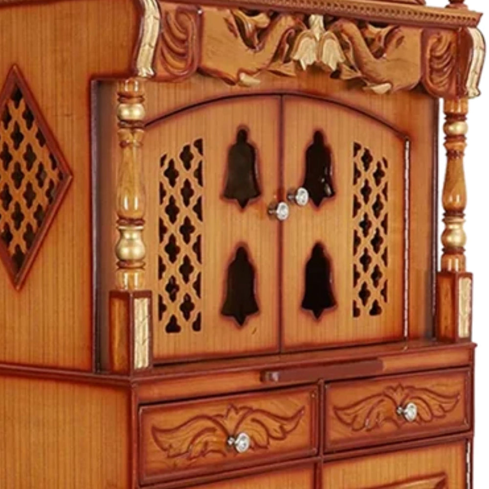 Divine Palace Large Floor Rested Pooja Mandap with Door (Teak Gold)