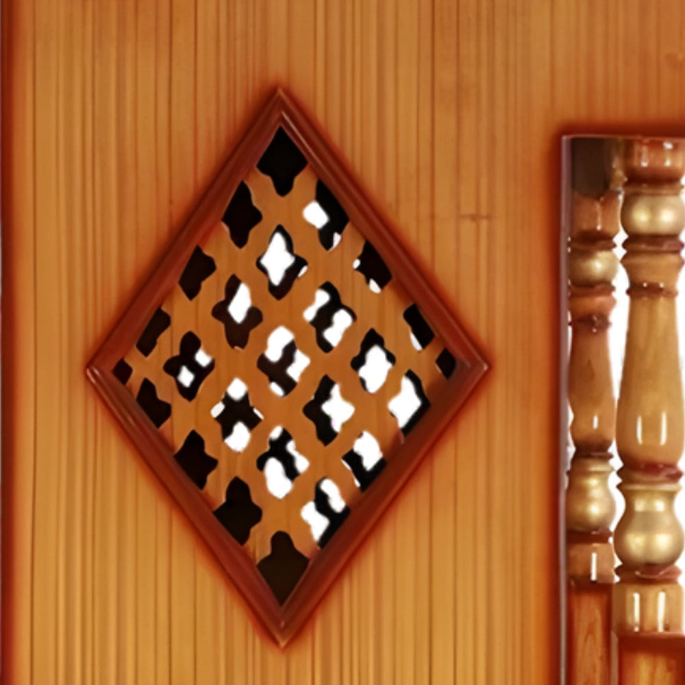 Placed on the side and front panels, this jali is also made from 100% durable teakwood. The smooth finish and edges offer a soft and unique look, much unlike the cheaper alternatives you will typically find in any regular mandir for home big size. The cross-styled hand-carved patterns give a professional and artistic touch to both the aesthetic and practical value of the big temple for home.