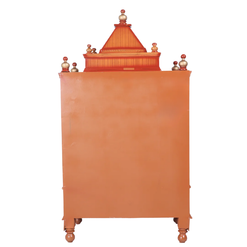 A pooja mandir for home with a door not only provides useful storage but also offers seclusion that establishes a peaceful and undisturbed area for worship. The sanctity of the area is increased by the door, which guarantees that the holy objects inside stay undisturbed when not in use. The Mandir for Home in teak color is a necessary component of the home because of its high degree of utility, which enables the worshipper to concentrate on their spiritual activities without interruptions.