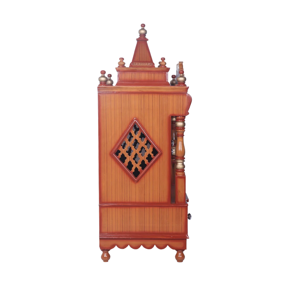 Divya Nivas Medium Floor Rested Pooja Mandir without Door (Teak Gold)