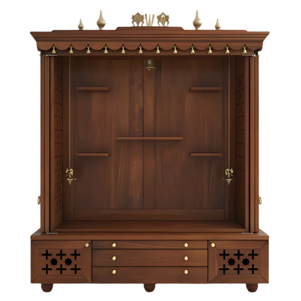 Divyasthal Teak Wood Pooja Mandap with Door (Teak)