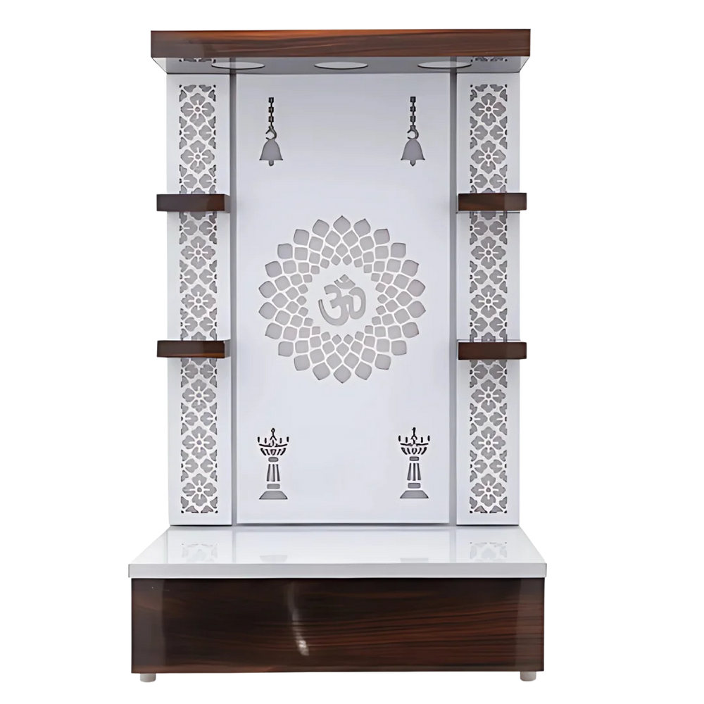 Jyoti Sthambh Wooden Pooja Mandir (White)