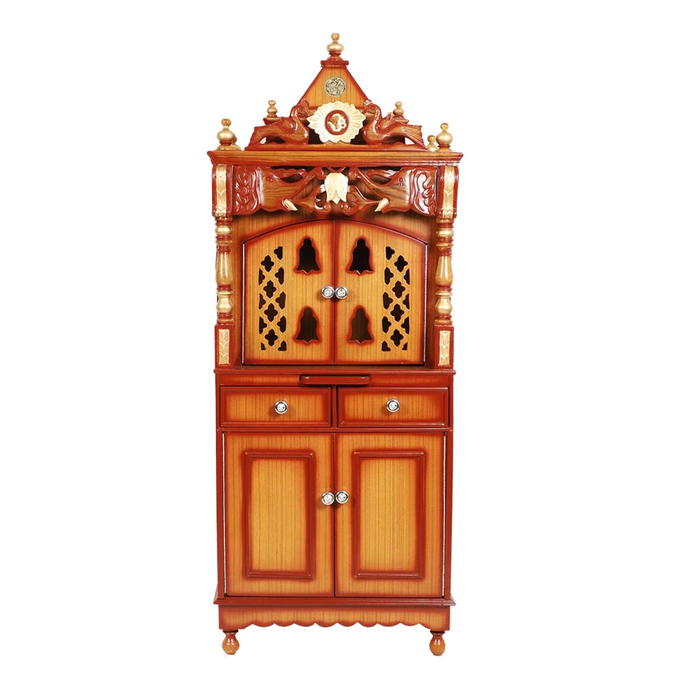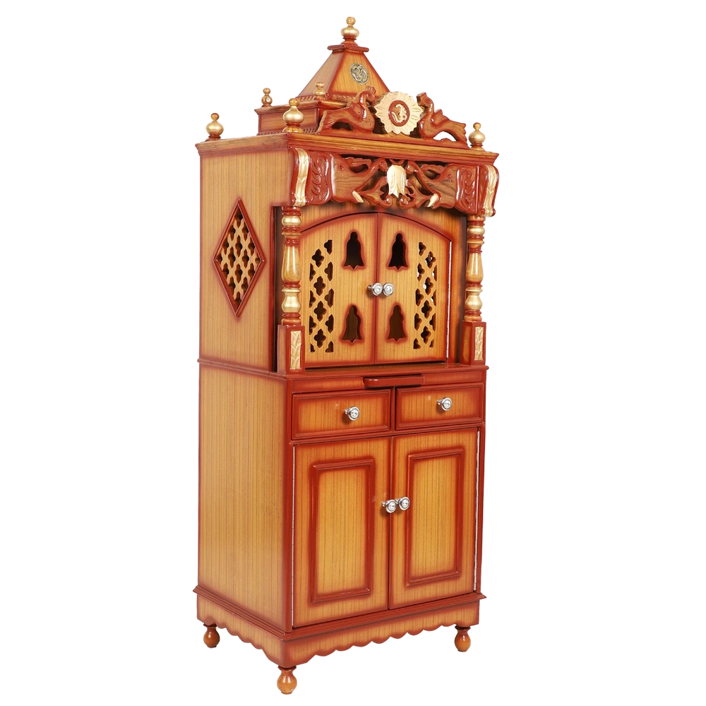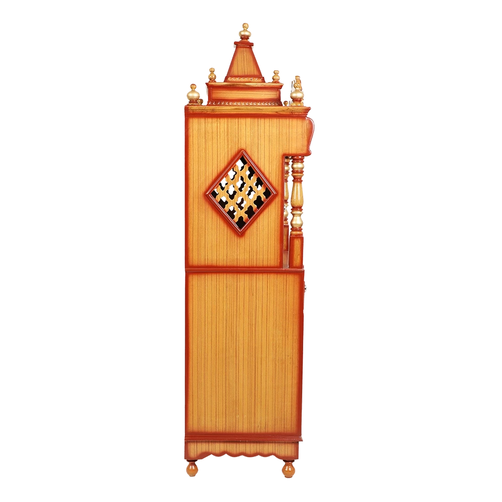 Kutustha Floor Rested Pooja Mandir with Door (Teak Gold)
