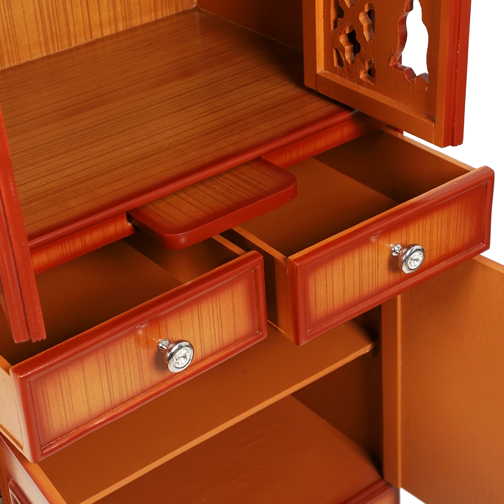 Furthermore, this big mandir for home also includes an inconspicuous dhoop tray. This has a unique sliding mechanism allowing you to pull it out while in use or push it in and hide it when not needed. This adds further to the functional appeal of the mandir for home big size, making it an ideal choice for any home, traditional or modern.