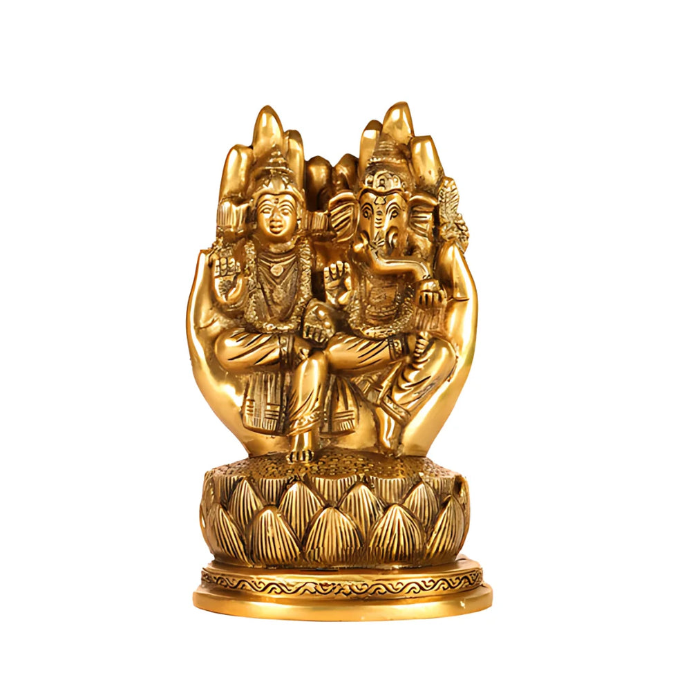 This brass idol shows fine hand work, balanced shape, and smooth curves. It rests on a broad base, so it stays steady on any shelf. The surface carries a soft shine that glows brighter in gentle lamp light. Every edge is rounded, and the solid brass weight keeps it safe during daily cleaning. Place it on a pooja corner, study desk, or living room console, and let calm focus, quiet joy, and steady strength fill everyday life.