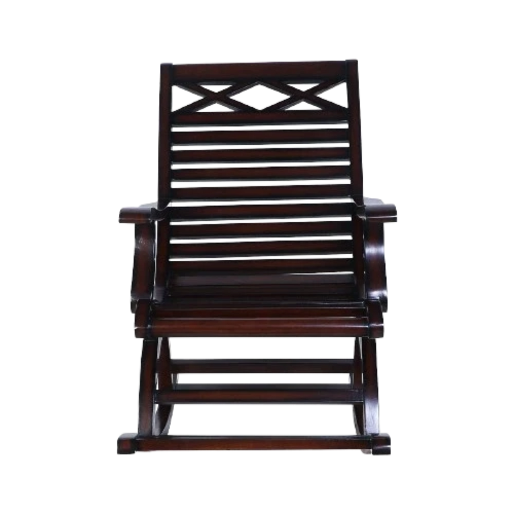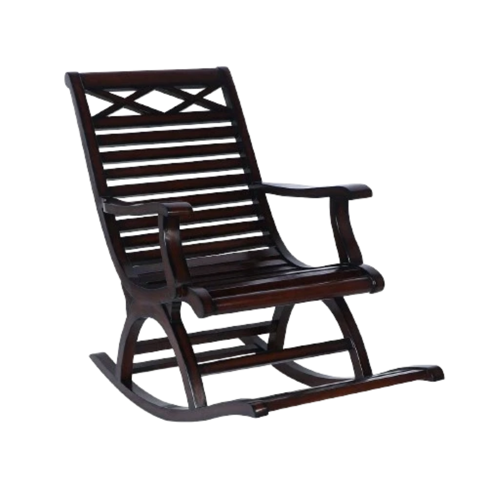 This comfortable chair's strong construction guarantees longevity even after regular use. Its solid frame provides excellent stability and allows the dipping without tipping. Despite its use, this chair always remains balanced so that it is trustworthy for people of all ages. Fine Brown finish brings the fine out in the natural beauty of the wood, and with time bring a great appearance to the chair. On a balcony or a cozy corner, this chair can handle everyday use. This robust frame assures long lasting performance, making it a kept favourite at home. It provides continuous strength while rocking in a comfortable motion.