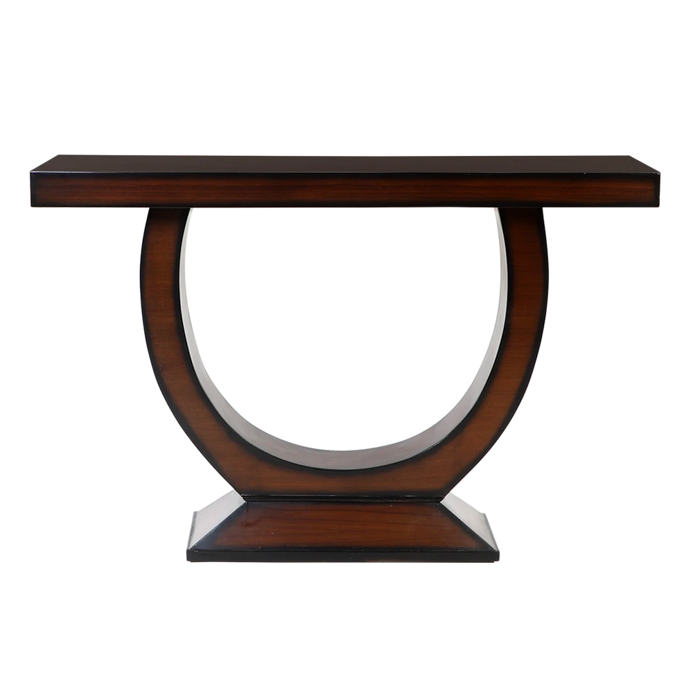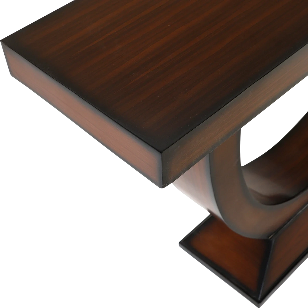 Upgrade your home décor with the Nobilic Console Table, a perfect piece for enhancing any room's interior design. This stylish wooden console table is made from solid wood, combining elegance with durability. Its rich brown finish brings depth and character to your living space. The glossy surface of the tabletop also helps in easy cleaning while enhancing its visual appeal. With its sleek U-shaped base, this table has a contemporary feel that creates an eye-catching centerpiece for every room. Its smooth lines and large top make it an ideal console for displaying decorative items like picture frames and flowers. The durable material and solid construction make this console table a valuable addition to your living space. The intricate attention to detail in its design elevates the look of any space without overpowering it. Bring a blend of contemporary style and functional design to your home with the Nobilic Console Table. Order now and enjoy a perfect balance of style and practicality in your interior.
