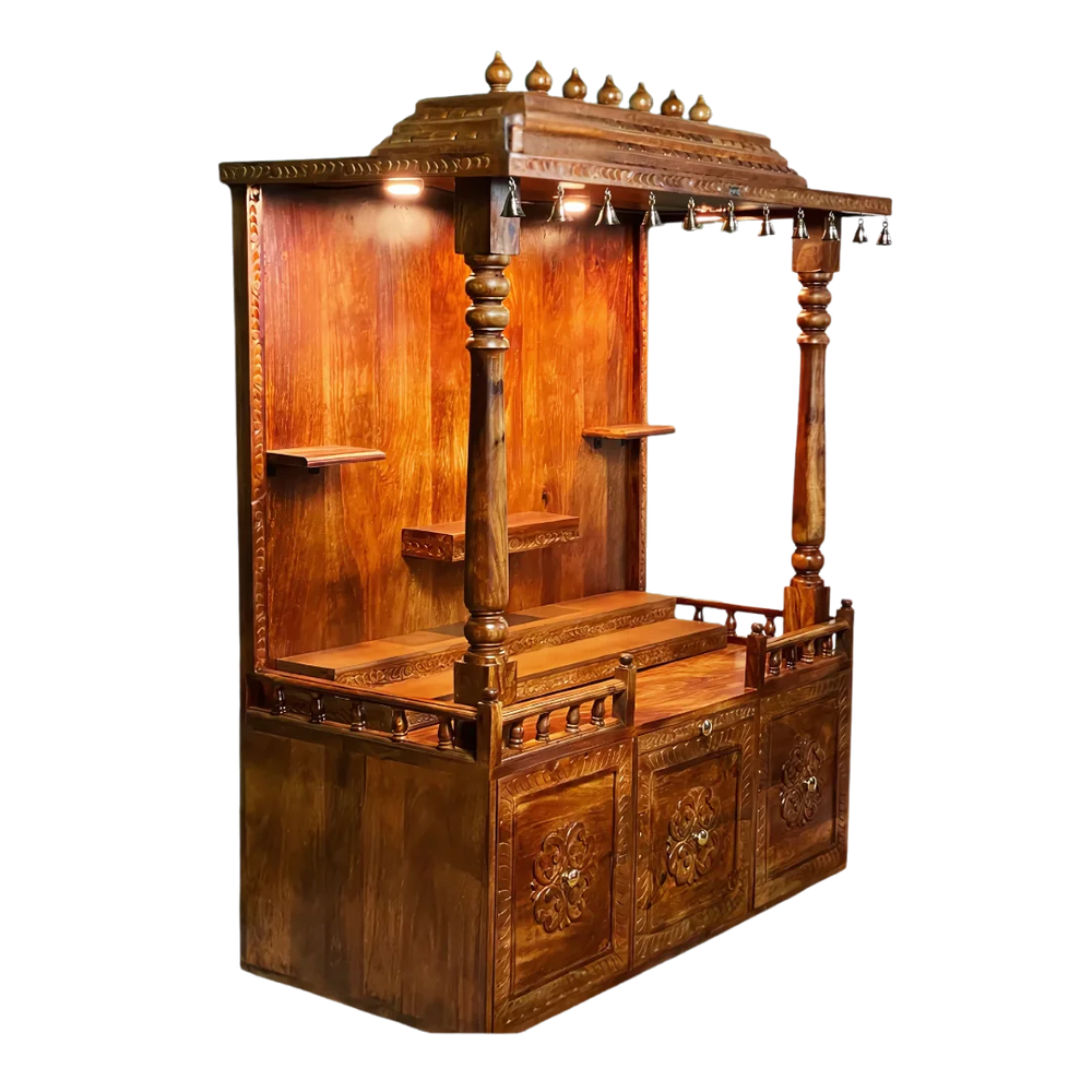 Every DZYN teak mandir is also protected by a 12‑month manufacturing‑defect warranty—we will repair or replace any faulty part at no cost to you
