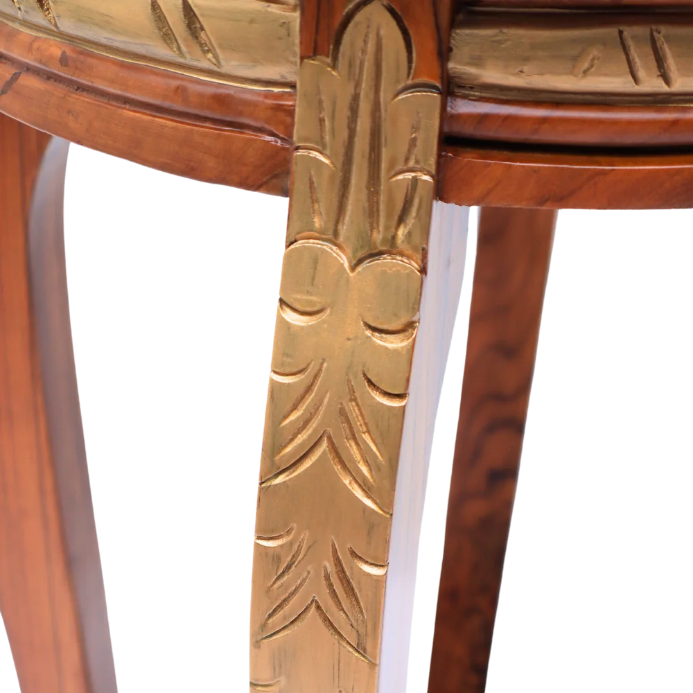 This plant stand with wooden legs has gold color accents and classic designs on the sides. Such designs make the table look elegant, yet simple. The gold finish brings out the color of nearby green plants. It gives a mix of traditional and stylish look to your space. The design fits well in both modern and old-style rooms. The carvings are smooth and stay clear for a long time. They do not get scratched easily. The gold color looks bright in natural light. This special part makes the table look more royal. It is a good choice if you want your plant area to look classy. The gold details also shine even in low light.