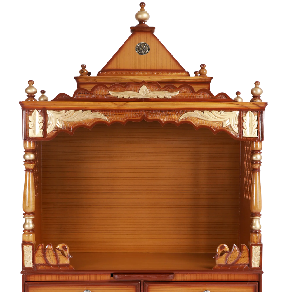 Sacred Home Large Floor Rested Pooja Mandir without Door (Teak Gold)