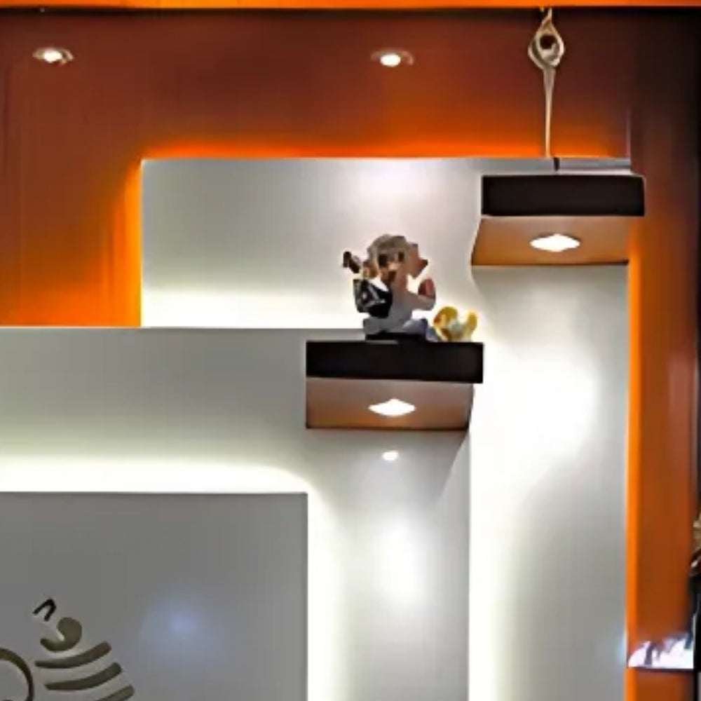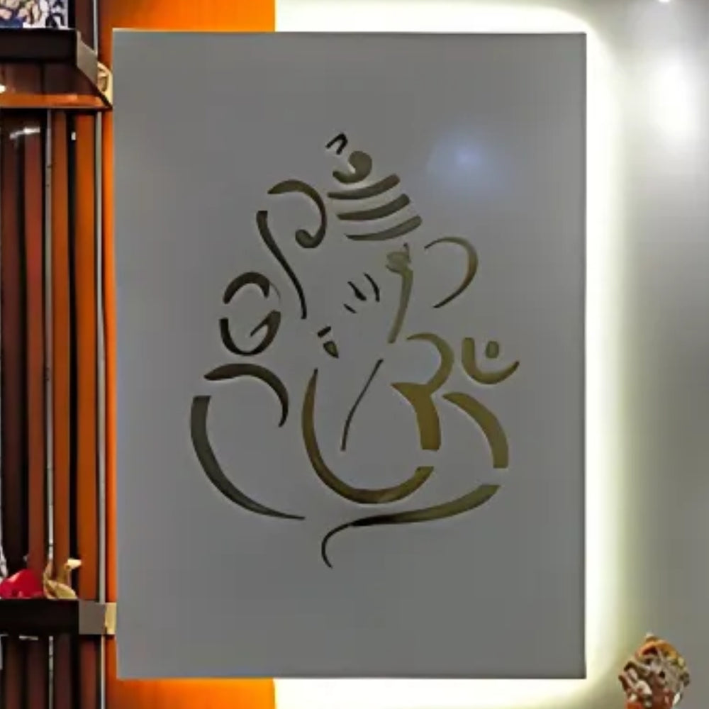 The main highlight of this pooja mandir is the glowing Ganesha cutout on the back panel. The design looks bright and peaceful when light passes through it. The simple outline gives a modern yet divine look that keeps the focus on the prayer area. The smooth surface spreads light evenly and adds a soft glow to the space. The carving is clean and well done which provides a clean finish. The light behind the Ganesha symbol creates a warm and spiritual feel in your home. The central placement of the panel keeps the idols as the main focus. This design adds devotion and art together, making the mandir graceful and attractive.